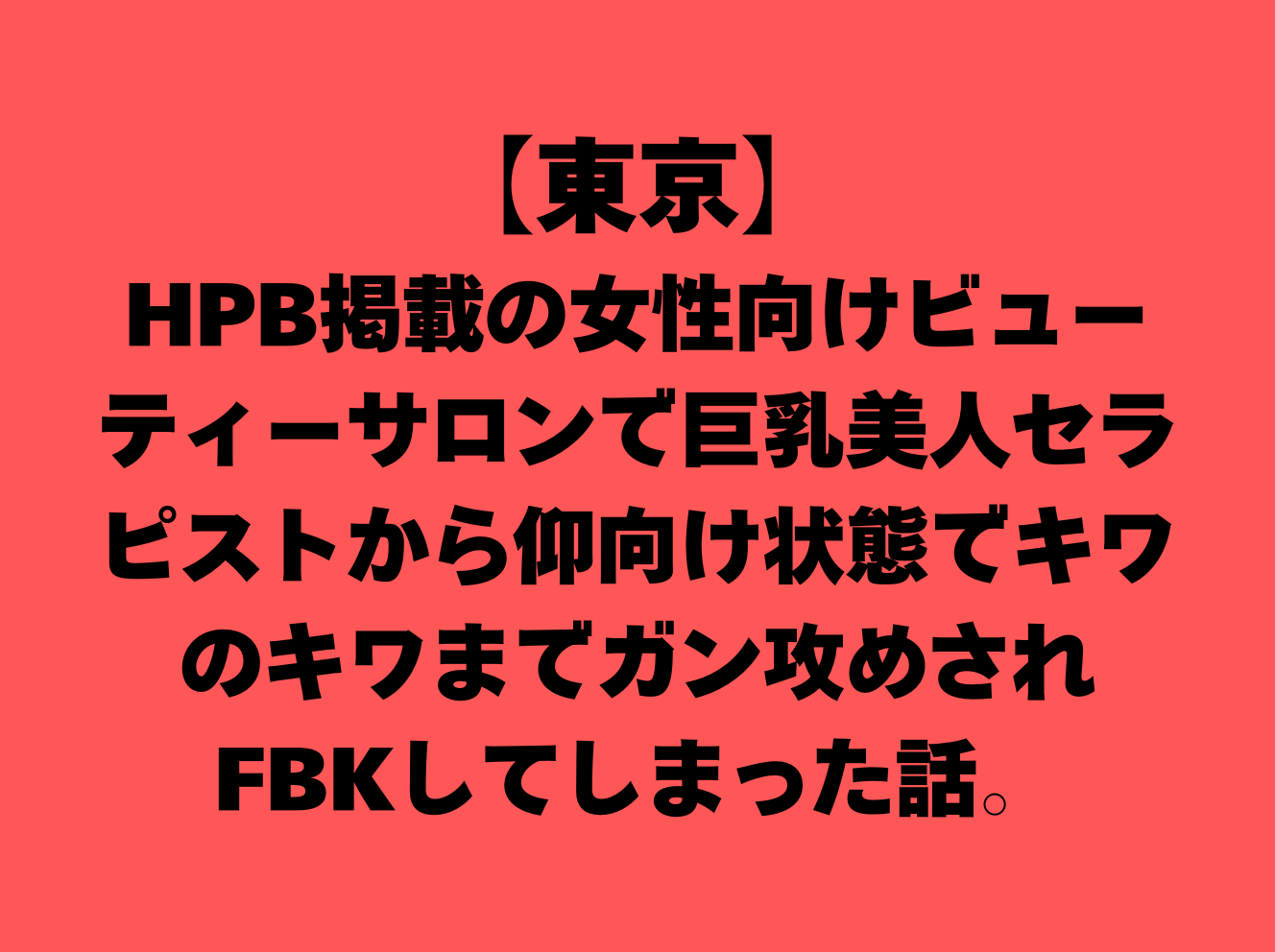 『HPB掲載の女性向けビューティーサロンで巨乳美人セラピストから仰向け状態でキワのキワまでガン攻めされFBKしてしまった』